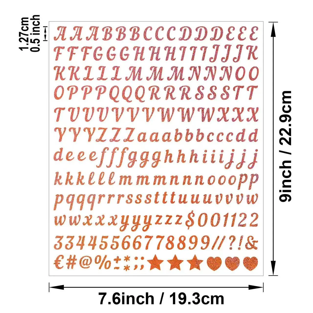 Hizki apaingarrizko eranskailu hau brikolajerako, eguneroko dekoraziorako eta etiketatze agertokietarako bereziki diseinatutako apaingarri sortzailea da. Multzo osoak ingelesezko 26 letra larriz, 0-9 zenbaki eta ikur arruntak ditu, hainbat ortografia, zenbakitze eta dekorazio beharrizanak asetzeko. Eranskailu material lodiz eta kalitate handikoz egina dago, seguru itxitako harea geruza batekin, erraz kentzen eta irmo itsasten da. Hainbat gainazal leun eta lautarako egokia da eta ez du hondakinik uzten kentzean.
