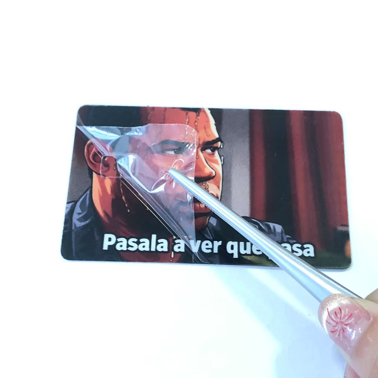 Garraioan produktuaren kalitatea ziurtatzeko, kreditu-txartelaren eranskailu bakoitzak babes-film bat dauka gainazalean. Babes-geruza honek modu eraginkorrean babesten ditu pegatinak marradura, hauts eta garraioan gerta daitezkeen beste kalteetatik. Salgaiak jasotzean, bezeroek babes-filma kendu behar dute kreditu-txartelen eranskailuen itxura argia eta bizia erakusteko.